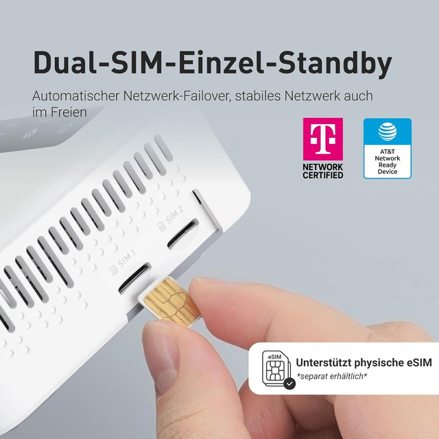 Der GL-iNet X2000 ist ein Dual-SIM LTE 4G Mobilfunkrouter, der zuverlässige Mobilfunkverbindungen in abgelegenen Gebieten und Highspeed-Internet in städtischen Gebieten bietet. Er verfügt über zwei externe LTE-Vollbandantennen für außergewöhnlichen Signalempfang und unterstützt zwei nano SIM-Steckplätze, wodurch Redundanz gewährleistet wird, damit das Gerät jederzeit online bleibt.