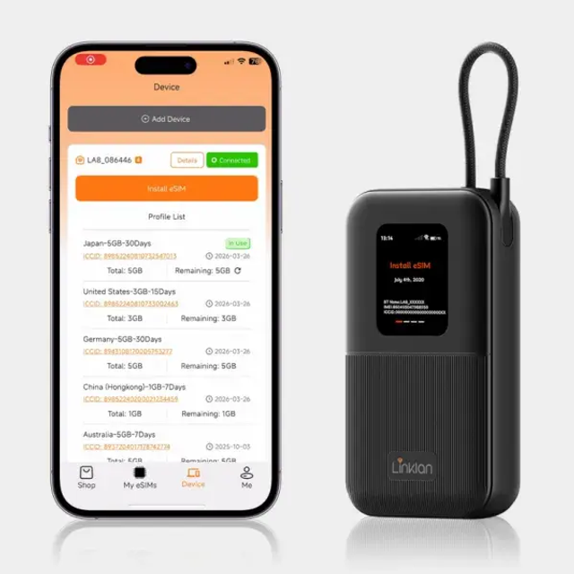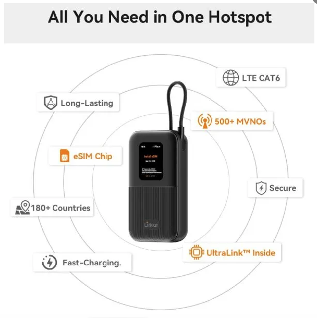 Der neue Linklan LA8 Router ist ein 4G LTE eSIM Router für die Verwendung als WLAN Hotspot mit bis zu 10 gespeicherten eSIM Profilen.